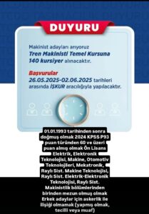 Tren Makinisti Temel Kursu Başvuru İlanı