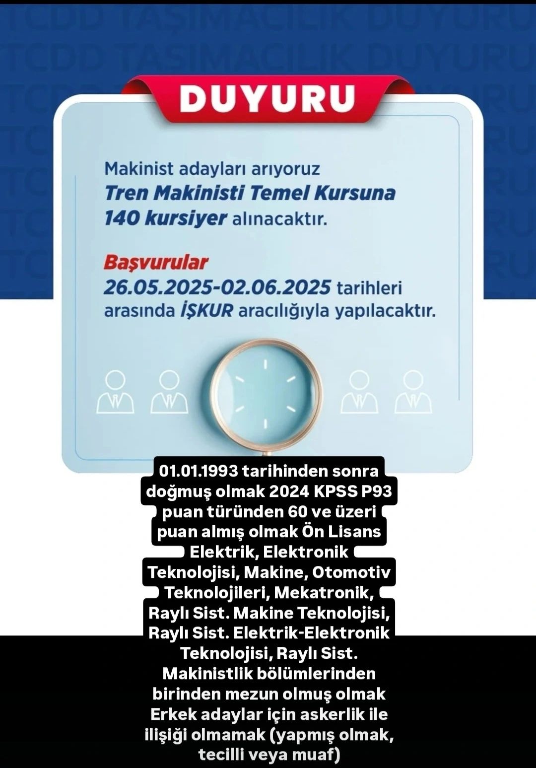 TCDD Taşımacılık AŞ resmi internet sitesinden yapılan ilana göre; TCDD taşımacılık aş ile İşkur arasında …